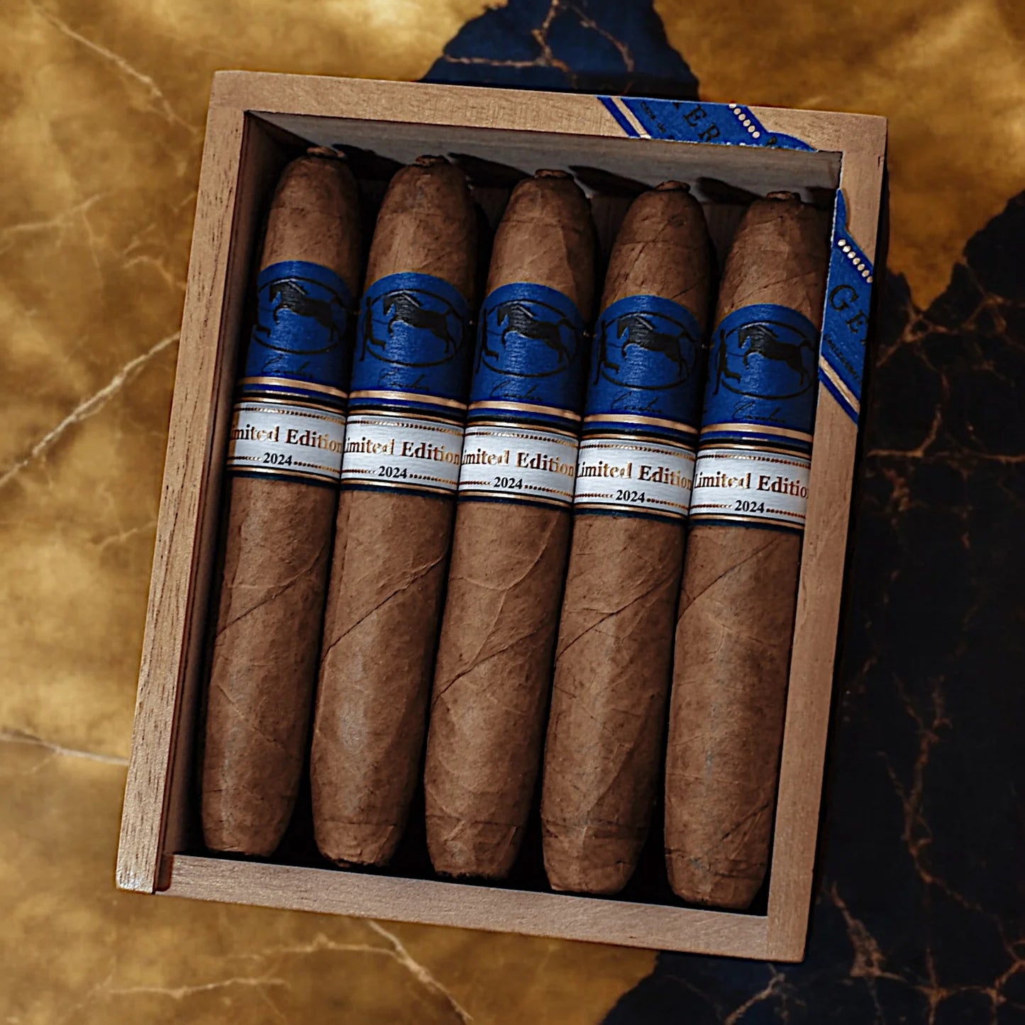 The Cavalier Genève Limited Edition 2024 is the seventh release in the brand’s acclaimed Limited Series, celebrated for its unique, one-of-a-kind cigars. This year’s edition debuts the first non-parejo size in the series, a 5½" x 58 double figurado complete with a pigtail cap, featuring an undisclosed blend to enhance the line’s exclusive allure.