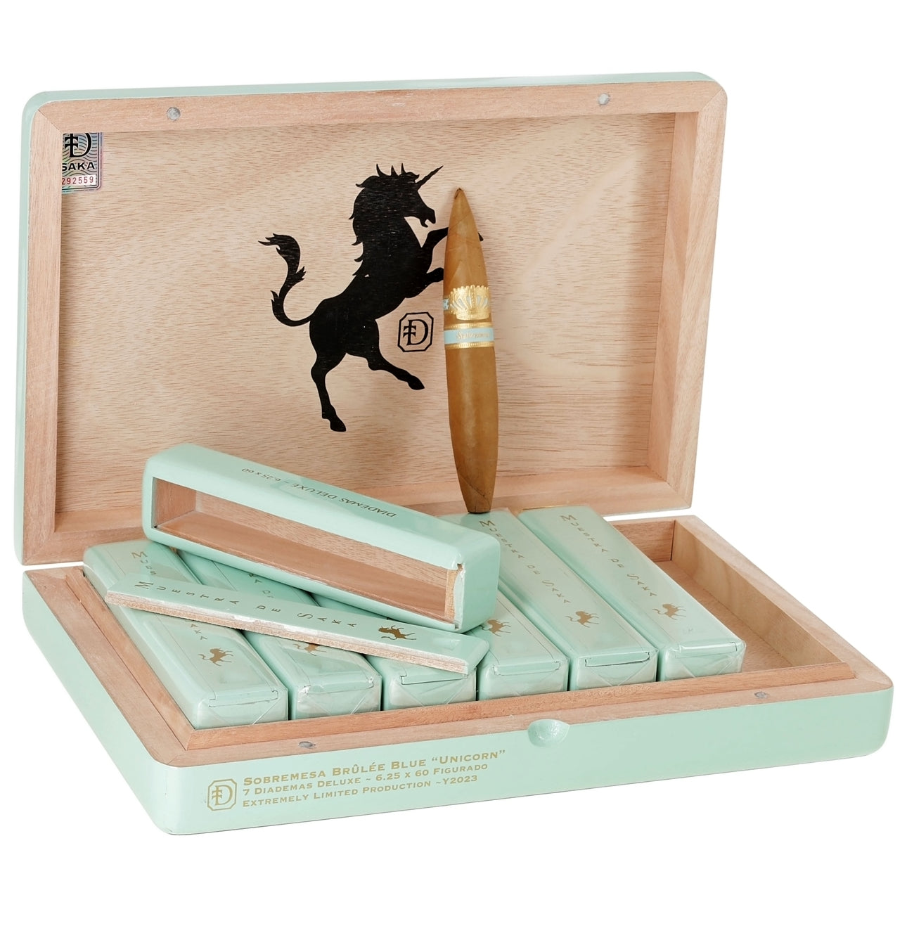 The Muestra de Saka Brûlée Blue Unicorn is the epitome of luxury and craftsmanship in the world of cigars. Hand-rolled at the esteemed Joya de Nicaragua factory, this ultra-limited masterpiece is a refined extension of the Brûlée line, but with an even more exclusive twist.